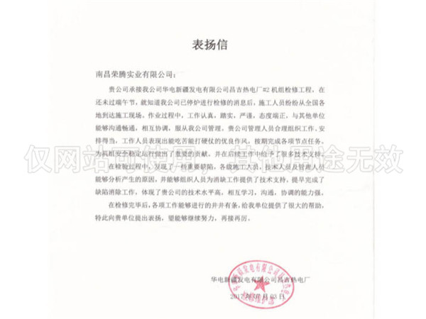 華能大慶熱電有限公司表?yè)P(yáng)信
