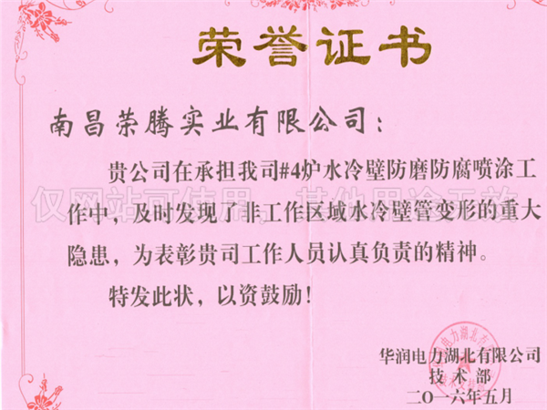 防磨防腐噴涂榮譽(yù)證書(shū)